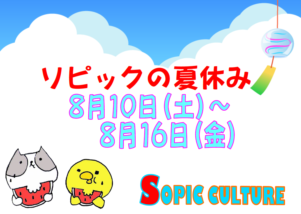 8月8日(木)※20時閉店